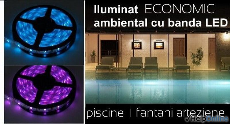 Banda led pt iluminat exterior piscine, iluminat arhitectural fantani, rezistenta la apa, autoadeziva, 30 leduri/m, pret led strip 12 euro + tva. Se monteaza usor, este solutia economica a iluminatului arhitectural cu proiectoare, ofera rezultate spectaculoase, culori disponibile alb cald/ rece, peste 50.000 ore functionare. Pt. detalii benzi cu leduri - AMRO Grup, 021.330.36.69, 0745.097264, vanzari@amro.ro, www.amro.ro