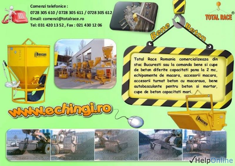 Oferta Constructii Satu Mare - Total Race Romania comercializeaza din stoc Bucuresti sau la comanda cupe de beton productie italia, cupa de beton pentru macara, cupe de beton, bene de beton, cupe macara, bena macara, bena cu descarcare centrala si furtun de cauciuc, bene beton cu jgeab metalic,...