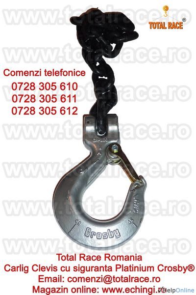 Oferta Constructii Calarasi - Total Race Group va ofera carlige cu siguranta cu prindere direct pe lant grad 100 Crosby, carlig ridicare cu siguranta cu prindere direct pe lant Platinium, carlige Clevis lant cu siguranta grad 100, carlige macara ridicare sarcini intre 1, 4 tone si 21 tone,...