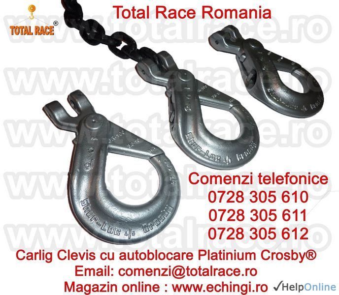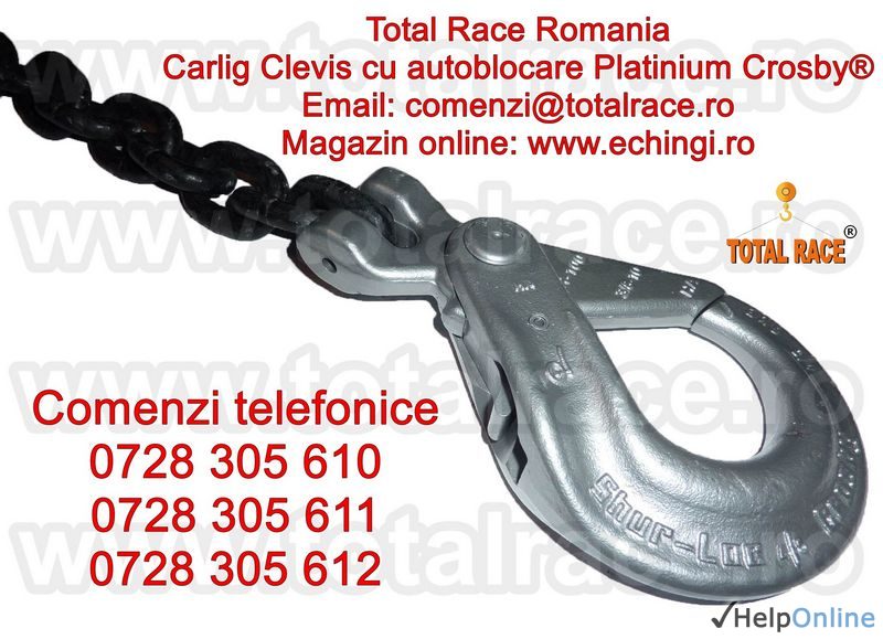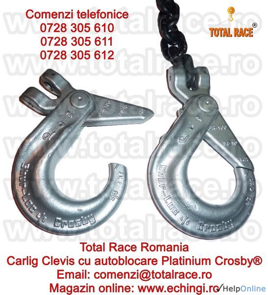 Oferta Constructii Hunedoara - Total Race Romania comercializeaza carlige ridicare Clevis cu autoblocare grad 100 gama Crosby Platinium, carlige cu autoblocare cu prindere direct pe lant grad 100 Platinium, carlig Clevis cu autoblocare de lant grad 100 Crosby, carlige cu autoblocare cu prindere...