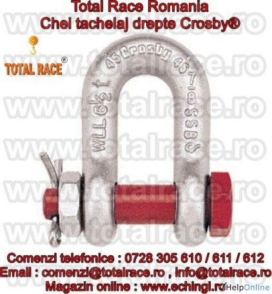 Oferta Constructii Prahova - Total Race Romania comercializeaza chei de tachelaj tip lira / drepte marca Crosby®, cheie tachelaj dreapta cu bolt filetat, gambeti tip lira, shackles Crosby® ce au capacitati cuprinse intre 0.5 Tone si 55 Tone . Cheile de tachelaj sunt in conformitate cu...