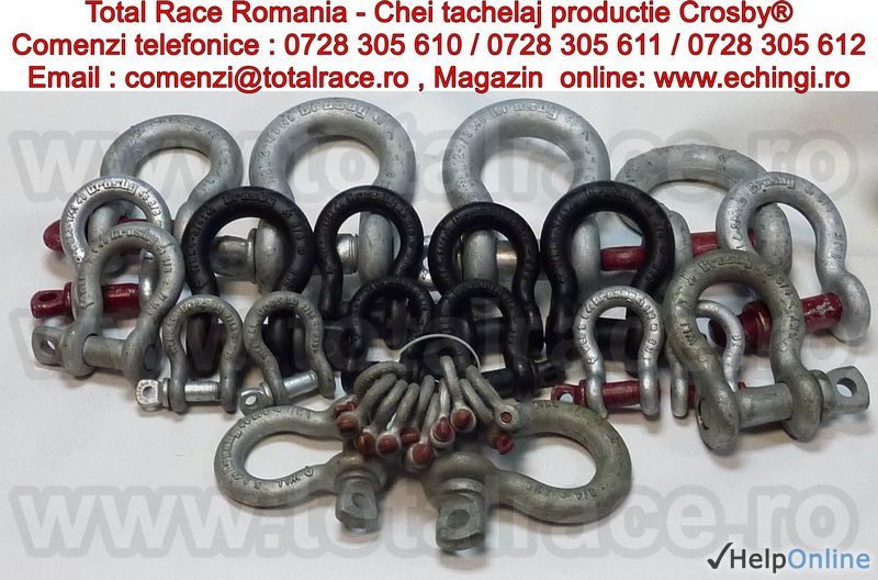 Oferta Utilaje, Echipamente Valcea - Total Race comercializeaza chei tachelaj/gambeti/shackles productie Crosby® diverse modele: chei tachelaj omega, chei tachelaj drepte, gambeti cu bolt filetat, gambeti cu bolt, piulita si siguranta, chei tachelaj speciale pentru teatru, scene, shackles...