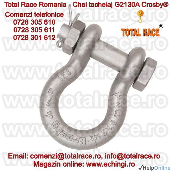 Total Race livreaza din stoc Bucuresti: chei tachelaj omega rezistenta ridicata G2130A Crosby®, chei tachelaj, chei tachelaj omega, gambeti, cheie tachelaj sarcini grele Crosby®, chei de tachelaj, chei tachelaj omega, shackles, gambeti G2130A, cheie tachelaj / gambeti / shackles G2130A Crosby®, chei tachelaj G2130A Crosby® diverse modele speciale pentru off road. Cheile de tachelaj Crosby® se livreaza cu certificate de calitate CE de la producator. Pentru detalii accesati: www.echingi.ro & www.cheitachelaj.ro