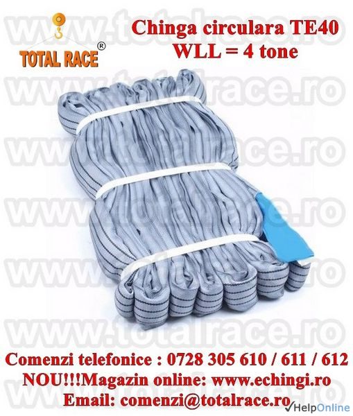 Total Race Group comercializeaza cu livrare din stoc Bucuresti chinga poliester 4 tone 6 metri, lungime desfasurata 12 metri, culoare gri, productie UTX Olanda. Chingile textile din poliester circulare se livreaza insotite de Declaratie de Conformitate, tabel de sarcini si instructiuni de utilizare.