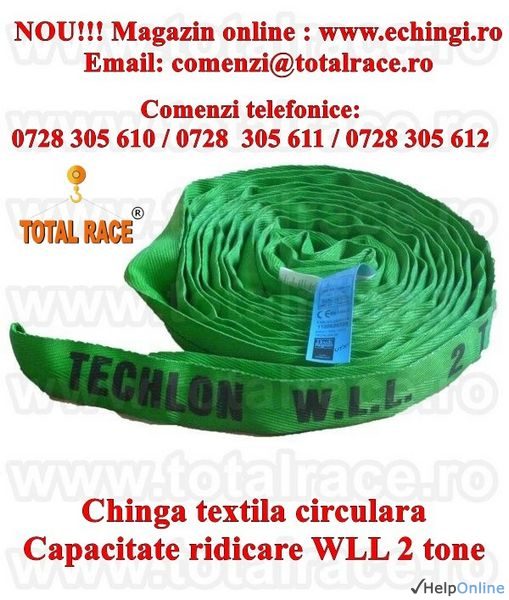 Oferta Constructii Bistrita-Nasaud - Chinga textila de ridicare circulara capacitate 2 tone lungime utila 1 metru, lungime desfasurata 2 metri, culoare verde, productie UTX Olanda.Total Race Romania livreaza chingile/sufele circulare insotite de Declaratie de Conformitate, tabel de sarcini si...