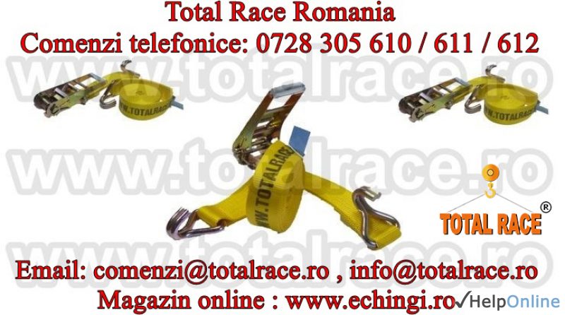Oferta Constructii Valcea - Total Race Romania comercializeaza cu livrare din stoc Bucuresti chingi de ancorare marfa cu capacitate de ancorare 10000 daN ( aprox. 10 tone ) peste incarcatura cu lungime 6 metri, latime banda 75 mm, in conformitate cu EN 12195 - 2, elongatie < 7 % cu clichet Stf...