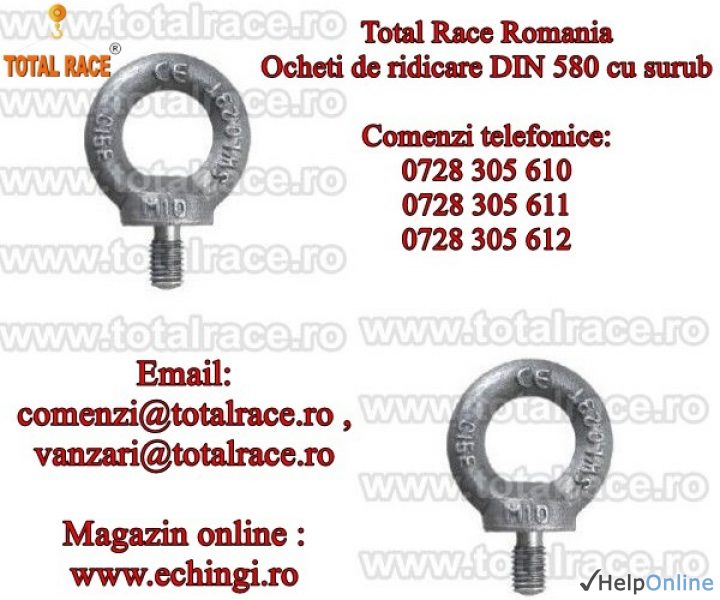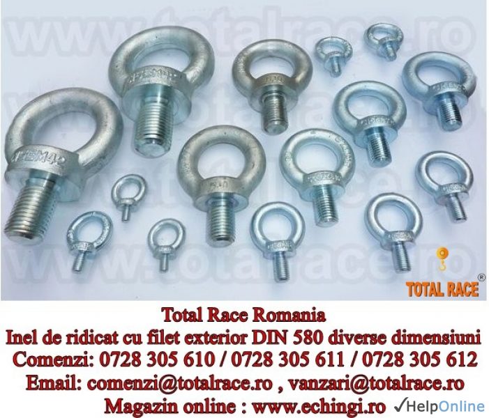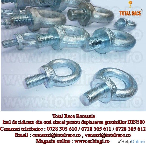 Oferta Constructii Sibiu - Total Race Romania comercializeaza inele de ridicare cu surub ( inele de ridicare tip tata) DIN 580, inele de ridicare cu filet exterior DIN 580, ocheti de ridicare cu surub DIN 580, surub cu ureche DIN 580 - APS2, inel cu surub DIN 580, inel de ridicare din otel zincat...