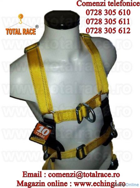 Total Race comercializeaza cu livrare din stoc Bucuresti hamuri profesionale, centura de siguranta complexa marime universala si ajustabila, echipamente de protectie pt munca la inaltime, centuri de protectie pt talie, inele de ancorare dorsale, inele de ancorare frontale, inele de ancorare laterale, frangii centuri de siguranta, centuri de siguranta protectia muncii, centuri de siguranta universale cu ajustare usoara cu ajutorul cataramelor pentru orice masura, accesorii pentru lucrul la inaltime, echipamente protectia muncii, centuri lombare de siguranta, echipamente lombare de siguranta, carabine, mijloace de legatura.