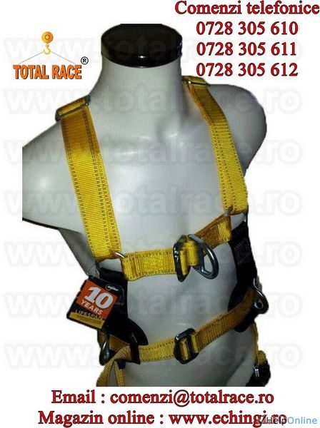 Total Race Romania va ofera ham de protectie pentru activitati desfasurate la inaltime, carabine, mijloace de legatura, franghii de siguranta, hamuri profesionale, centura de siguranta complexa marime universala si ajustabila, centuri de protectie pt talie, inele de ancorare dorsale, inele de ancorare frontale, inele de ancorare laterale, frangii centuri de siguranta, centuri de siguranta protectia muncii, centuri de siguranta universale cu ajustare usoara cu ajutorul cataramelor pentru orice masura, accesorii pentru lucrul la inaltime, echipamente protectia muncii, centuri lombare de siguranta, echipamente lombare de siguranta, mijloace de legatura.
