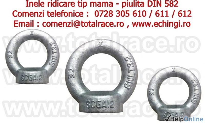 Total Race Romania comercializeaza inele de ridicare piulita ( inele de ridicare tip mama) DIN 582, inele de ridicare cu filet interior DIN 582, ocheti de ridicare piulita cu livrare din stoc Bucuresti, piulita cu ureche DIN 582 diverse capacitati, inel piulita DIN 582, inel de ridicare DIN 582 pentru deplasarea greutatilor, ochet piulita stoc Bucuresti, inele ridicare piulita DIN 582, inel tip mama DIN 582, piulita inelara DIN 582.