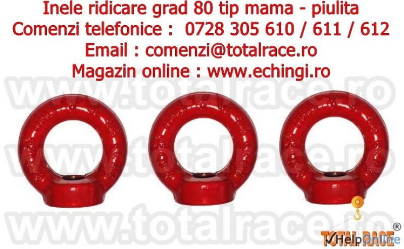 Total Race Romania comercializeaza inele de ridicare piulita ( inele de ridicare tip mama) industriale grad 80, inele de ridicare cu filet interior grad 80, ocheti de ridicare piulita industriali, piulita cu ureche grad 80 capacitati mari, inel piulita grad 80, inel de ridicare grad 80 pentru deplasarea greutatilor APM8, ochet piulita industrial, inele ridicare piulita APM8 grad 80, inel industrial tip mama grad 80, piulita inelara grad 80. Pentru preturi, date tehnice si disponibilitate stoc accesati magazinul online: www.echingi.ro, www.ineleridicare.ro, www.ochetiridicare.ro .