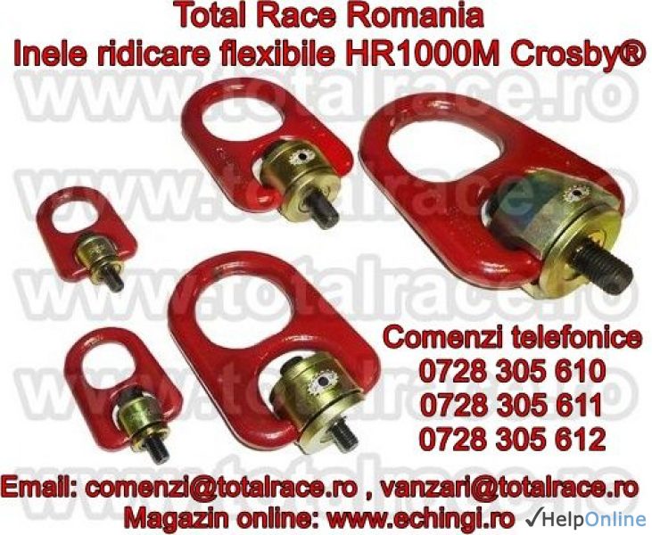 Total Race Group va ofera inele flexibile ridicare, ocheti ridicare, puncte prindere cu fixare prin insurubare, inele ridicare rotative cu articulatie, inele pivotante, inele de ridicare cu surub, elemente prindere rotative, echipamente ridicare rotative, ocheti ridicare cu surub, ocheti ridicare rotativi, surub rotativ capacitati mari, inele surub rotativ, puncte ridicare, ocheti ridicare flexibili, punct ridicare Galben/ Yellow Point(YP), inele de ridicare HR-1000 Heavy Lift Swivel Hoist Rings .