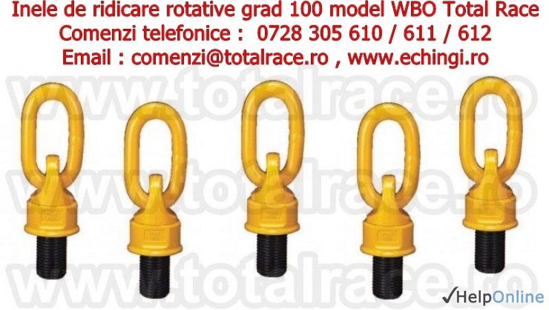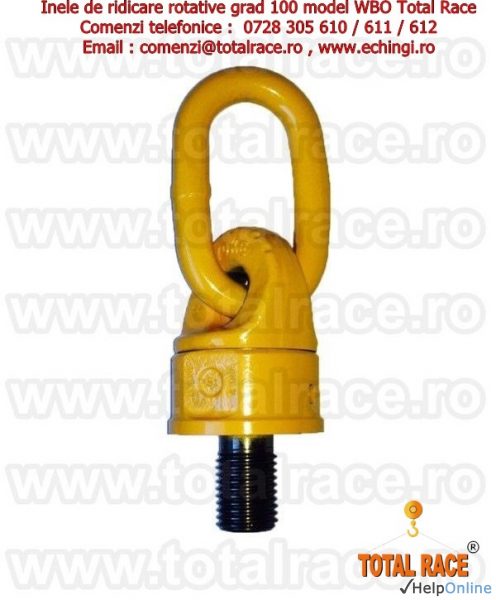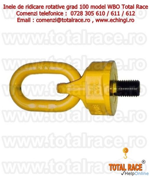 Total Race Romania livreaza din stoc Bucuresti inele flexibile ridicare model WBO, ocheti ridicare cu livrare din stoc Bucuresti, puncte prindere cu fixare prin insurubare, inele ridicare rotative cu articulatie, inele pivotante, inele de ridicare cu surub model WBO, elemente prindere rotative, echipamente ridicare rotative, ocheti ridicare cu surub, ocheti ridicare rotativi, surub rotativ capacitati mari, inele surub rotativ model WBO dimensiuni M8 - M36, puncte ridicare, ocheti ridicare flexibili stoc Bucuresti capacitati intre 0, 6 tone si 15 tone, punct ridicare Galben/ Yellow Point(YP) stoc Bucuresti.