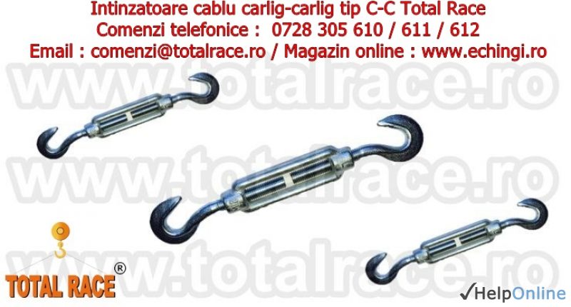 Total Race Romania comercializeaza cu livrare din stoc Bucuresti intinzatoare de cablu de otel tip carlig-carlig, intinzator de cablu cu doua carlige, intinzatoare cablu tip C-C cu diferite marimi si capacitati, intinzatoare cablu tip carlig-carlig material DIN 1480. Pentru preturi, date tehnice si disponibilitate stoc accesati magazinul nostru online: www.echingi.ro