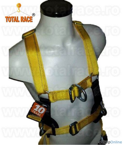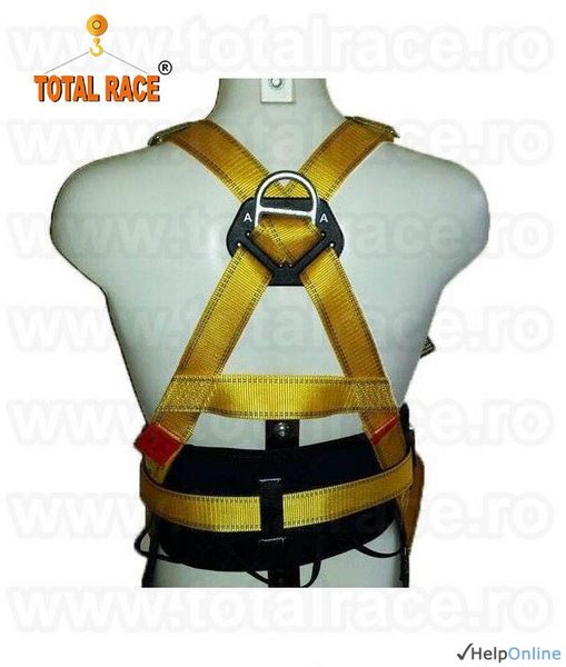 Total Race comercializam centuri de siguranta pentru protectie la inaltime, echipamente de lucru si protectia muncii, hamuri ajustabile, centuri de siguranta si protectia muncii, centuri complexe, funii de siguranta, centura de siguranta pentru protectie in timpul lucrului pe schele, in timpul utilizarii platformelor la inaltime, mobile si fixe, a nacelelor si platformelor autoridicatoare de lucru, mijloace de legatura, carabine, hamuri de protectie pentru toate activitatile desfasurate la inaltime.