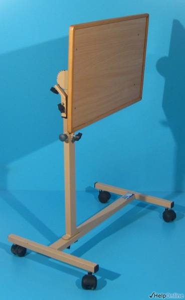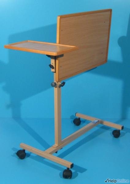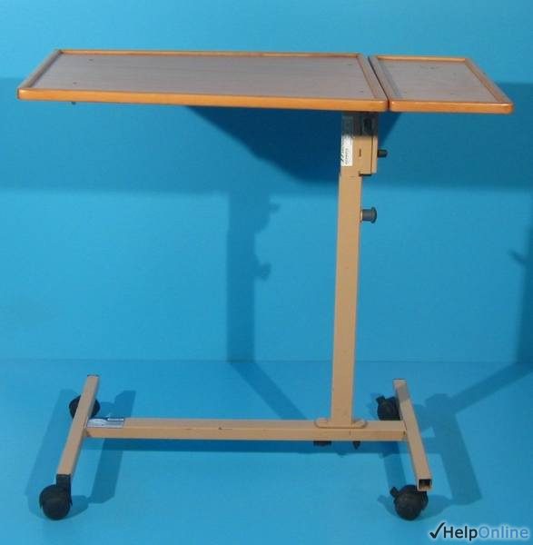 Magazin online specializat in vanzarea de produse ortopedice second hand vinde masa pentru servit la pat cu roti, reglabila pe inaltime. Masa pliabila se foloseste pentru servirea pacientilor la pat. Datorita formei sale si a reglajului pe inaltime masuta pliabila se poate adapta oricarui tip de pat. Blatul este din PAL laminat cu parti laterale antialunecare. Dimensiune blat - 40 X 60 cm Inaltime reglabila - 77 - 110 cm. Lungime - 66 cm. Latime - 42 cm