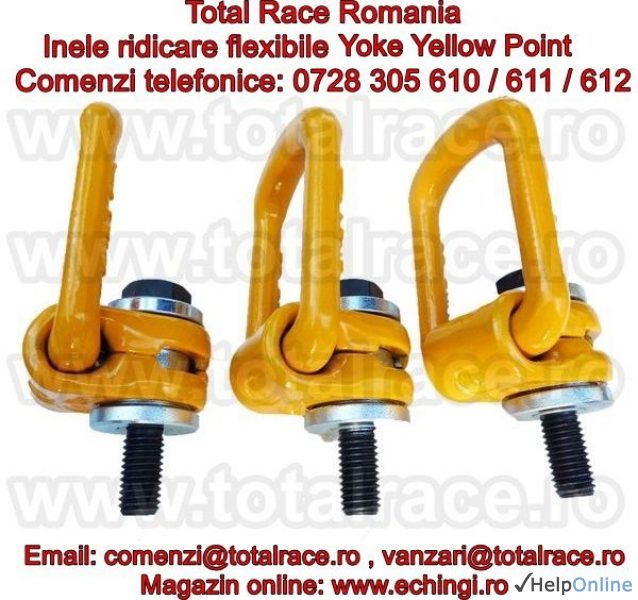 Total Race Romania comercializeaza puncte ridicare flexibile Yellow Point Yoke, inele flexibile ridicare, ocheti ridicare, inele ridicare rotative cu articulatie, inele pivotante, inele ridicare cu surub, ocheti ridicare cu surub, ocheti ridicare rotativi, surub rotativ capacitati mari, inele surub rotativ, ocheti ridicare flexibili .
