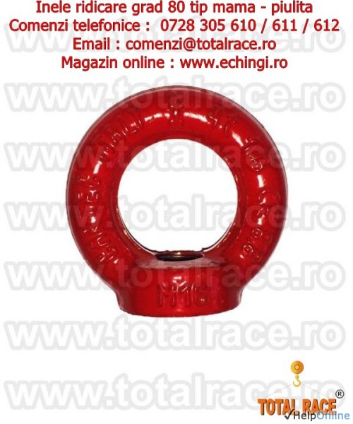 Total Race livreaza din stoc Bucuresti: inele de ridicare piulita ( inele de ridicare tip mama) grad 80, inele de ridicare cu filet interior APM8 grad 80, ocheti industriali de ridicare piulita, piulita cu ureche APM8, inel piulita grad 80, inel de ridicare industrial pentru deplasarea greutatilor, ochet piulita, piulita inelara grad 80 capacitati intre 0, 4 tone - 12 tone, inele ridicare piulita industriale, inele APM8 grad 80 dimensiuni M6 - M30. Pentru preturi, date tehnice si disponibilitate stoc accesati magazinul online: www.echingi.ro, www.ineleridicare.ro, www.ochetiridicare.ro .