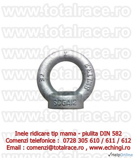 Total Race livreaza din stoc Bucuresti: inele de ridicare piulita ( inele de ridicare tip mama) DIN 582, inele de ridicare cu filet interior DIN 582, ocheti de ridicare piulita, piulita cu ureche, inel piulita DIN 582, inel de ridicare pentru deplasarea greutatilor, ochet piulita, piulita inelara DIN 582 capacitati intre 90 kg - 20000 kg, inele ridicare piulita, inele DIN 582 dimensiuni M6 - M64.