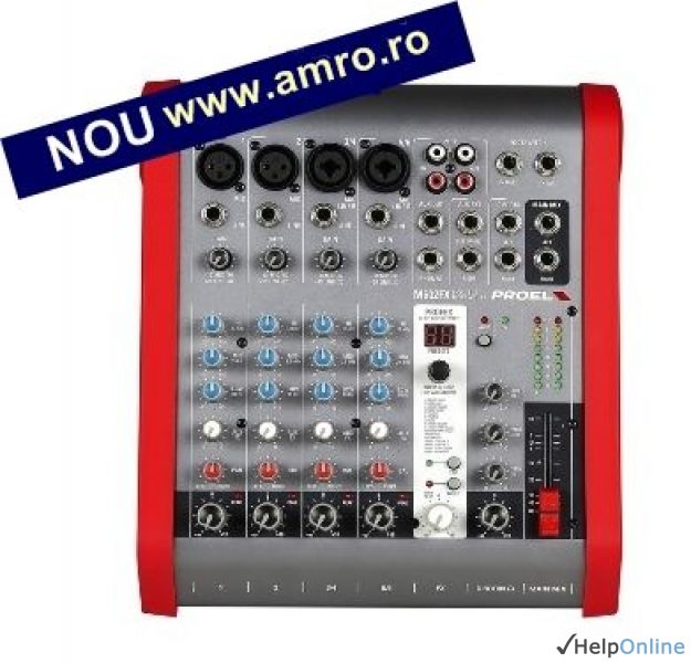 ProelM602FX mixer audio 4canale de microfon, interfata USB, 3 benzi EQ, procesor efecte 24biti, 256 preset-uri, efecte- vocal, Rev + Delay, Rev + Tap Delay. Pret mixer karaoke 152eur+tva, cod comanda M602FX, Proel Italia. Importator direct mixere pentru sonorizari, console mixaj profesional Amro Grup, Bucuresti.