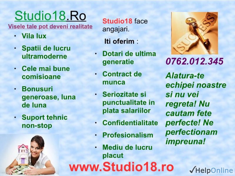 Oferta Salariu minim 2000 Lei Lunar! Alatura-te echipei Studio18