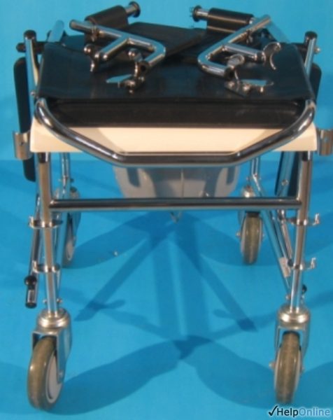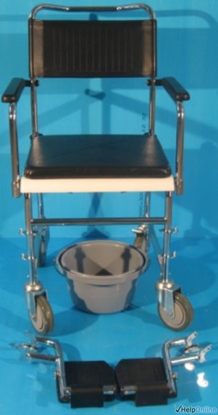 Magazin online specializat in comercializarea produselor ortopedice second hand vinde scaune cu WC, import Germania de la cele mai renumite firme de produse ortopedice din Europa, precum B+B, Meyra, Invacare, Vermeiren, Schuchmann, etc. Acest carucior cu wc poate fi folosit in locuinta si ca scaun cu rotile. Are manere rabatabile ce pot usura urcarea si coborarea de pe scaun. Rotile permit deplasarea deasupra vasului de toaleta. Rotile din spate sunt dotate cu frana de picior pentru mai multa stabilitate in manevrare. Sezutul si spatarul sunt tapitate si lavabile ( se spala fara a-si pierde calitatile ). Vasul de toaleta si sezutul sunt detasabile. Suportii de picioare sunt rabatabili si detasabili.