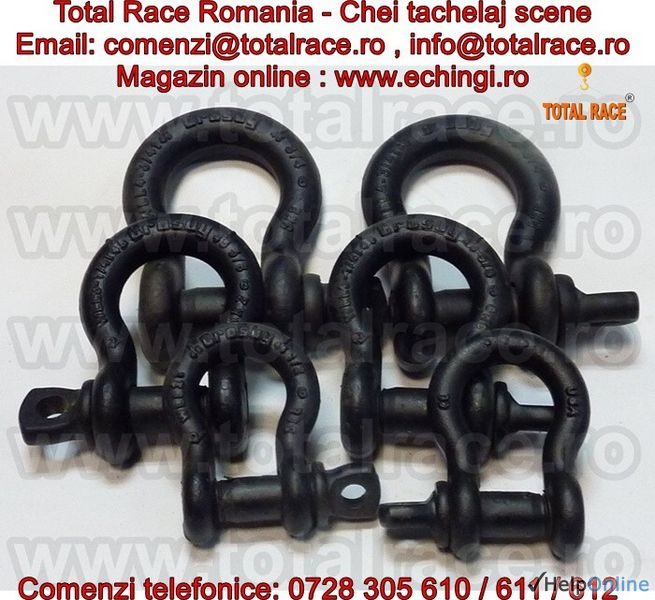Total Race comercializeaza cu livrare din stoc Bucuresti: chei de tachelaj pentru scena/ teatru / circ / concerte, chei de tachelaj model S 209T tip omega marca Crosby, cheie tachelaj cu bolt filetat. Chei de tachelaj cu capacitati intre 1 tona si 4, 75 tone. Gambetii sunt in conformitate cu EN 13889 si indeplinesc cerintele de performanta ale Fed. Spec. RR-C271D tip IVA, grad A, Clasa 2, ASME B30.26. Cheile de tachelaj au factor de siguranta: MBL = 6 x WLL (Sarcina maxima de lucru), shackles Forjat - Calit si Temperat, cu bolt aliat, material otel aliat, capacitatea stantata permanent. Cheile de tachelaj Crosby® se livreaza cu certificate de calitate CE de la producator. Pentru detalii accesati: www.echingi.ro & www.cheitachelaj.ro