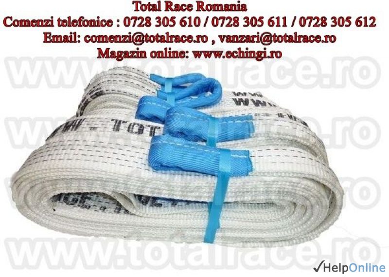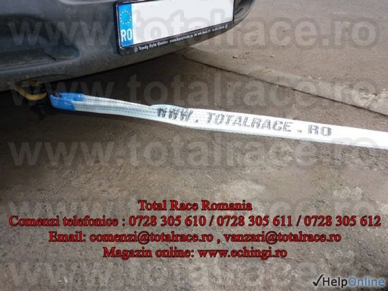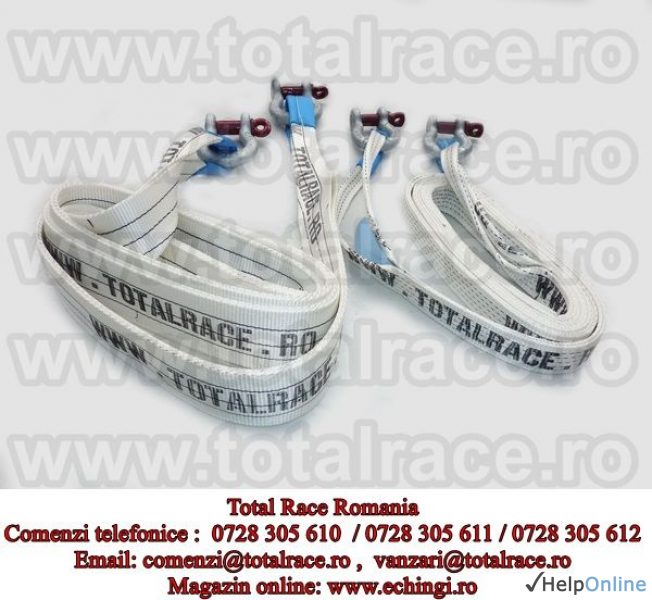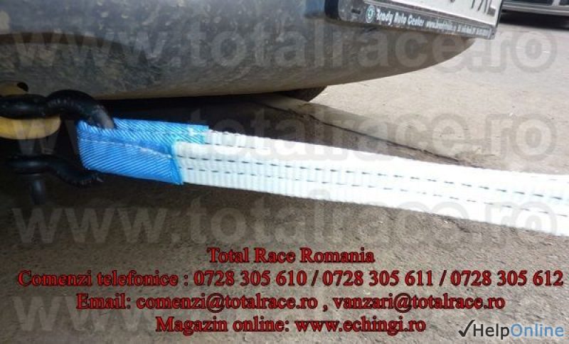 Oferta Transporturi Neamt - Total Race Romania comercializeaza chingi tractare / remorcare / recuperare / troliere de MBL 7 tone cu lungime de 4 metri / 6 metri, alte lungimi la cerere, culoare ecru, latime de banda 60 mm, sufe remorcare textile din poliester fabricate in 2 straturi cu...