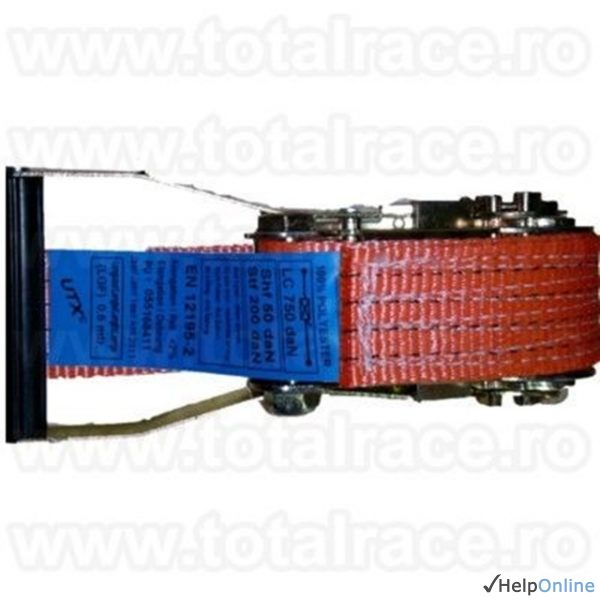 Total Race Group va ofera sufe de ancorare sistem 50A mm cu latime banda 50 mm, in conformitate cu EN 12195 - 2, elongatie < 7 % cu clichet Stf 350 daN, din 2 parti, carlige diverse modele(de exemplu carlige ancorare tip gheara duble, gheara simplu, carlige cu siguranta, carlige triunghi ), din poliester, culoare portocalie, 5 dungi negre. Capacitatea de ancorare este Lc 2500 daN drept si Lc 5000 daN peste incarcatura, eticheta ancorare - date de identificare produs. Chingile textile de ancorare sunt insotite de Declaratie de Conformitate. Se utilizeaza pentru legarea, ancorarea si protejarea marfurilor in timpul transportului, sunt chingi usor de folosit si nu deterioreaza marfa, www.echingi.ro