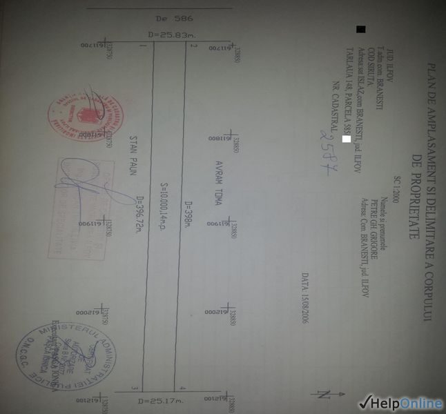 Proprietar Vand Schimb accept unele variante cu imobiliare in Ilfov sau Bucuresti-Teren extravilan in Localitatea Branesti sat Islaz Judetul Ilfov in suprafata 10.014mp.d=26m.distanta sat.950m.Terenul este situat intre calea.ferata(halta)si A2(auto soarelui)Zona Metropolitana BUCURESTI-ILFOV.Localizare Teren T.148.P585/45.Google Earth.Cadastru si intabulare.Terenul nu are inalta tensiune pe el si nici pe langa el, de asemenea nici conducte de nici un fel sub el, poate fi introdus in intravilan si ulterior parcelat atat dupa noua lege cat si dupa vechea lege.Legea noua: Ordonanta de urgenta.7/2011 care modifica si completeaza Legea 350/2001 privind amenajarea teritoriului si urbanismului.De mentionat este faptul ca linia stalpilor de curent electric media tensiune este la.370m.Pret 2.50 euro/mp(usor discutabil).Terenul se afla spre padurea Zoicaru la 740m.de aceasta.Tel.0761329671, 0725065443