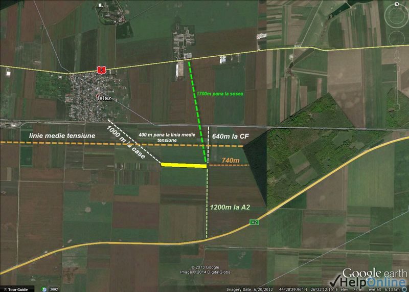 Terenul nu are inalta tensiune pe el si nici pe langa el, de asemenea nici conducte de nici un fel sub el, poate fi introdus in intravilan si ulterior parcelat.De mentionat este faptul ca linia stalpilor de curent electric media tensiune este la.370m.