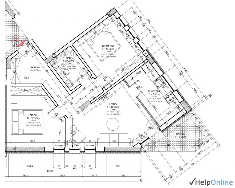 Suprafata utila: 61.30 mp, parter, regim inaltime: P+2E+M - Incaperi: living: 16.20 mp, dormitor: 12.00 mp, dormitor: 12.10 mp, bucatarie: 7.40 mp, baie: 4.00 mp, balcon: 6.30 mp, vestibul 9.60 mp.
